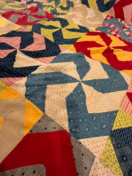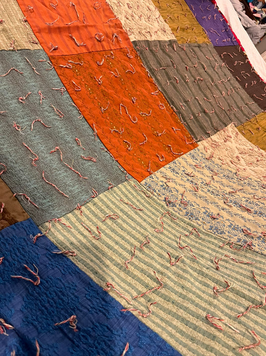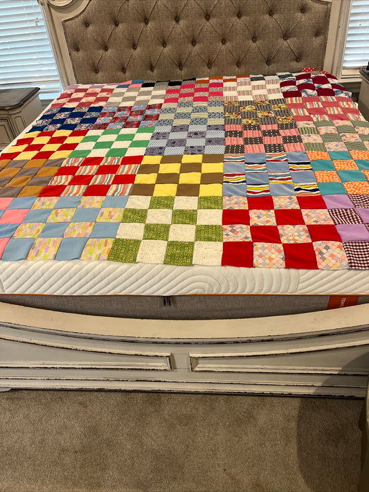 Quilt Top Polyester Fabric 60/70s Handmade Scrap Patchwork Retro 72x90